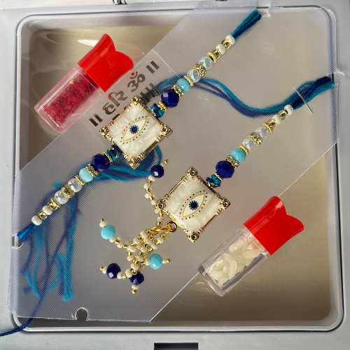 Unless mentioned specifically, our silver-look or gold-finish Rakhis are made with high-quality imitation materials—not real silver or gold.