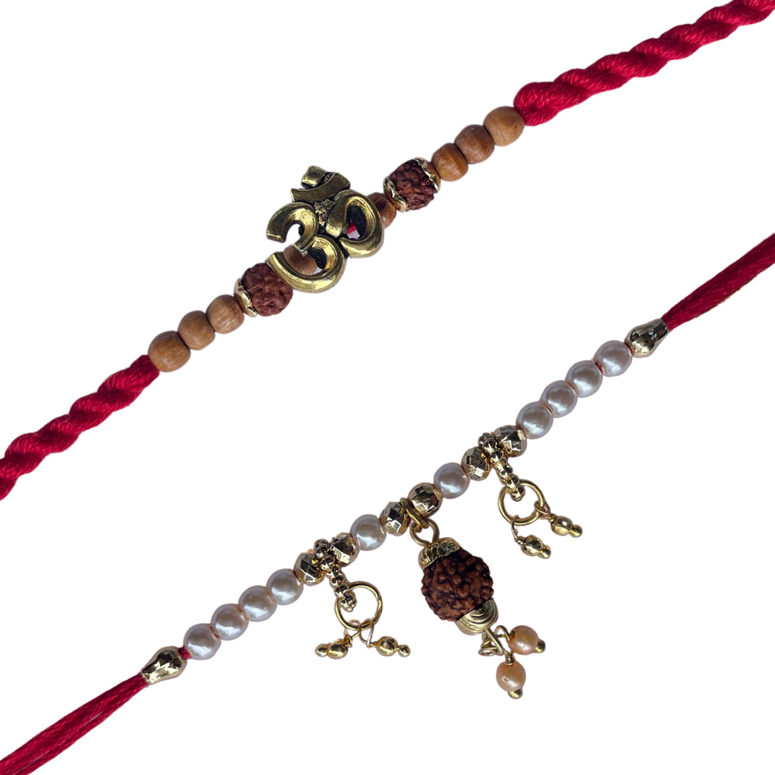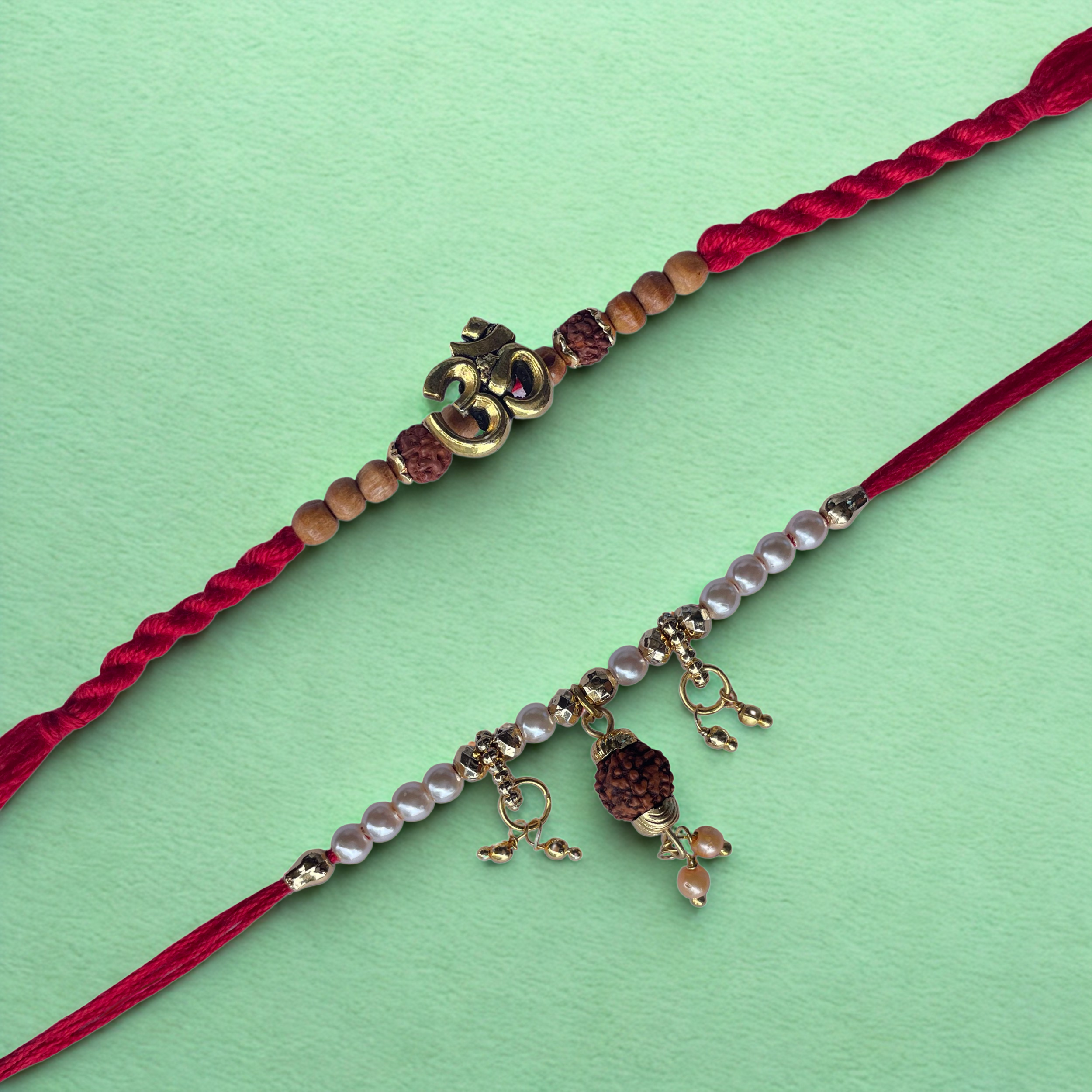 Set of 2 Om & Rudraksha Charm Rakhis for Brother