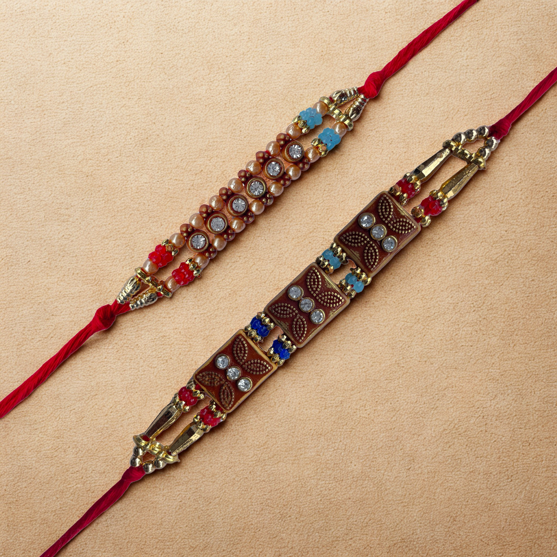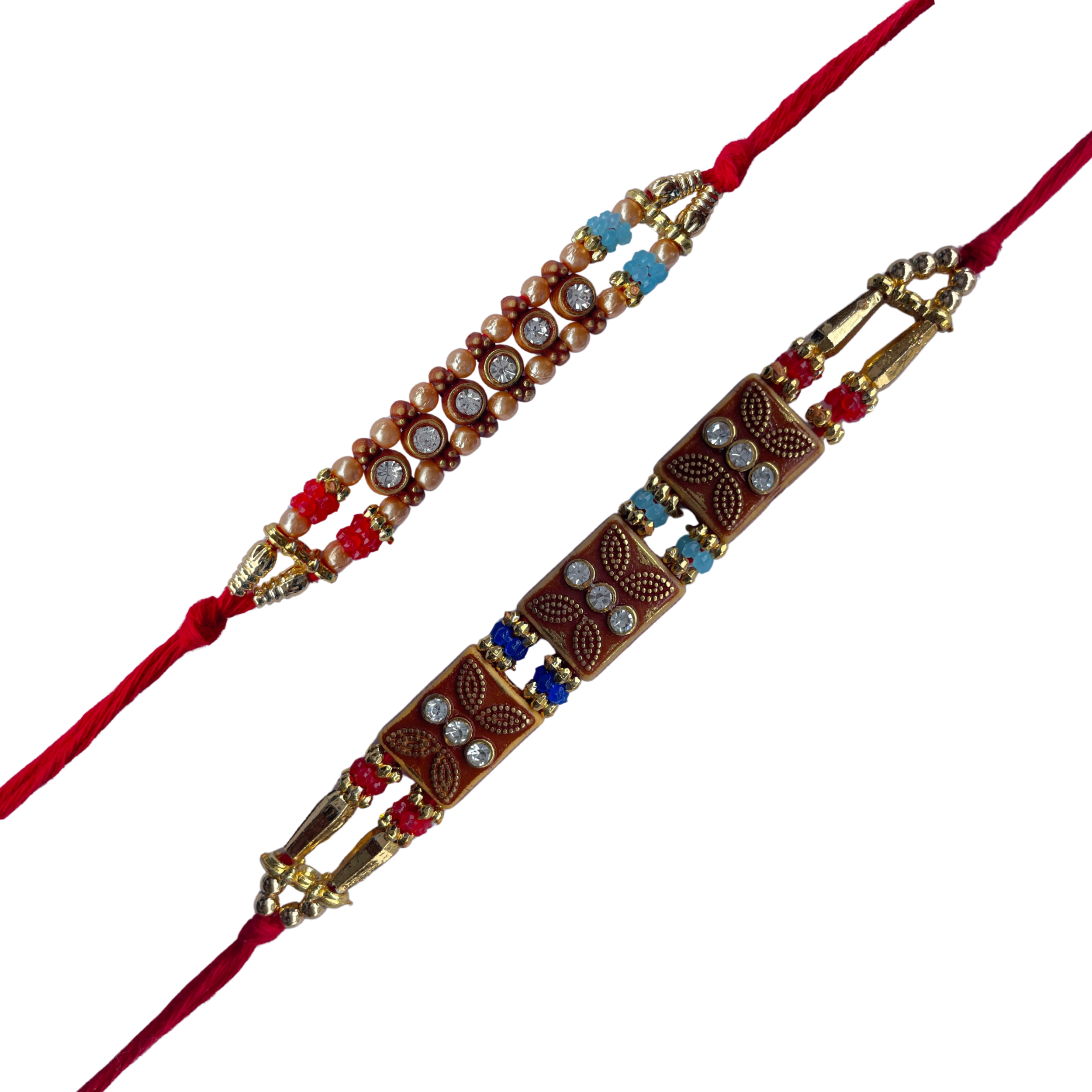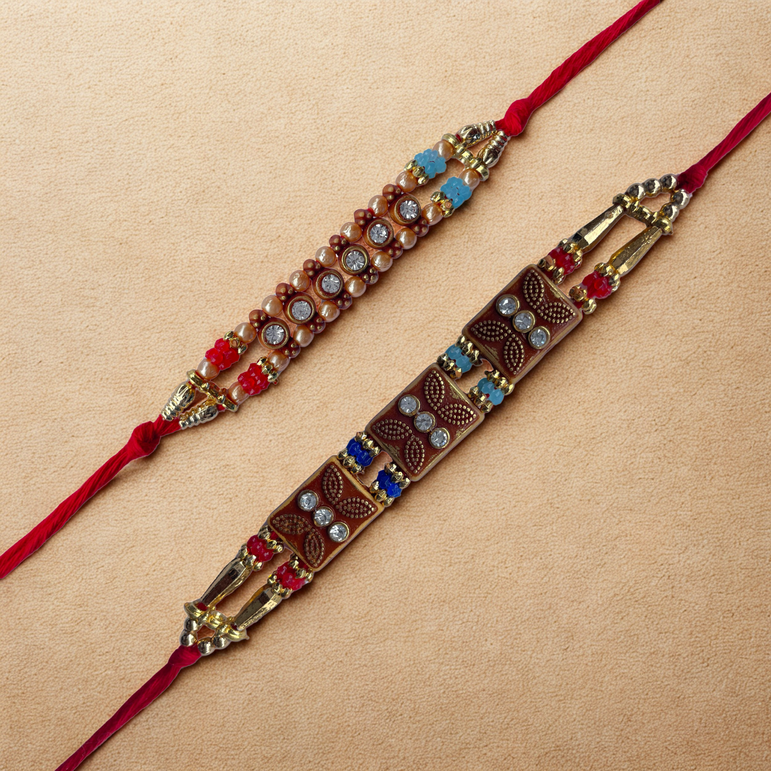 Set of 2 Traditional Stone-Studded Rakhis for Brother