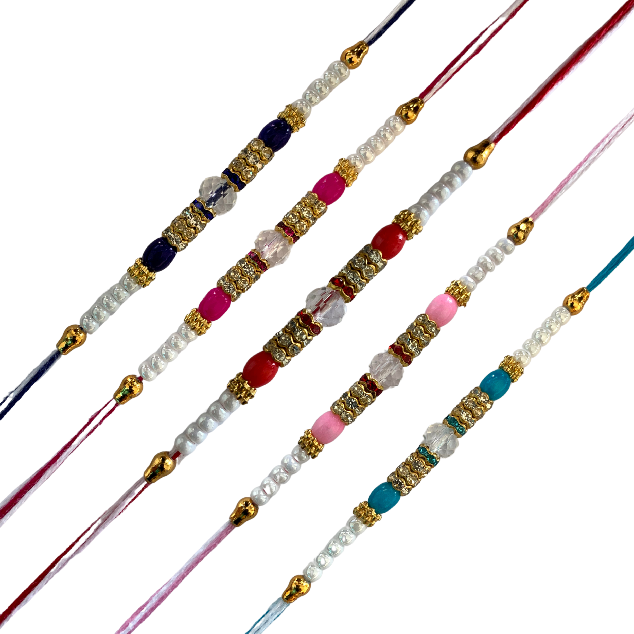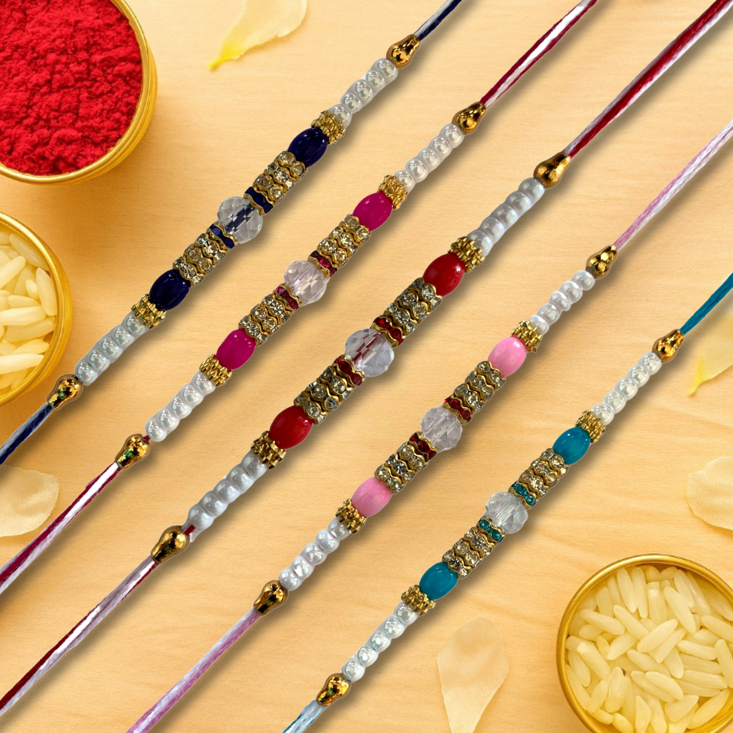 Set of 5 Elegant Crystal Beaded Rakhi Set for Brothers
