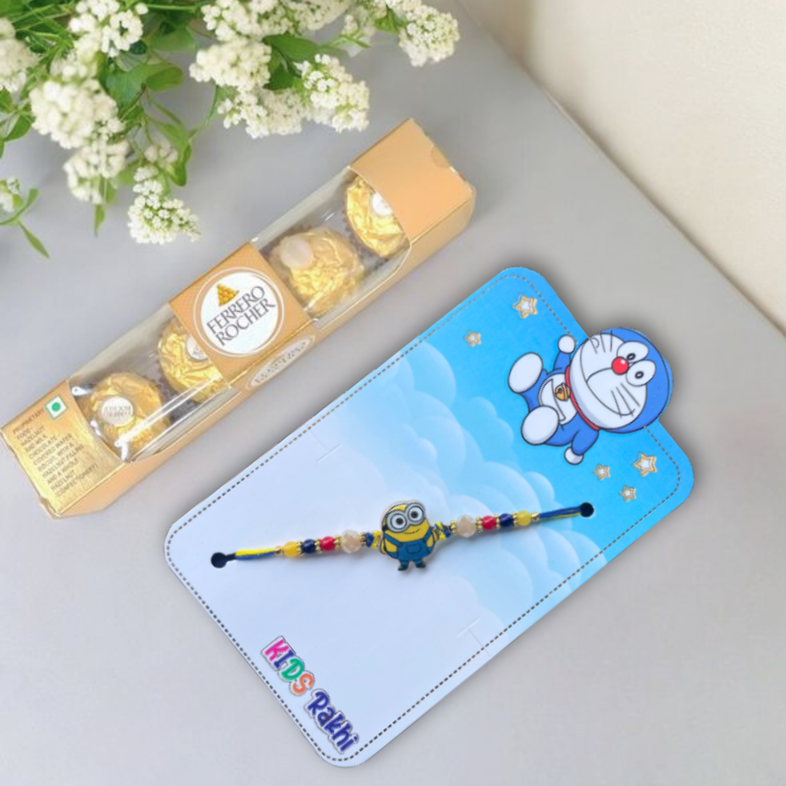 Giggle Guard Minion Rakhi with Ferrero Rocher Chocolate Gift Pack (4 pieces) , 50 g