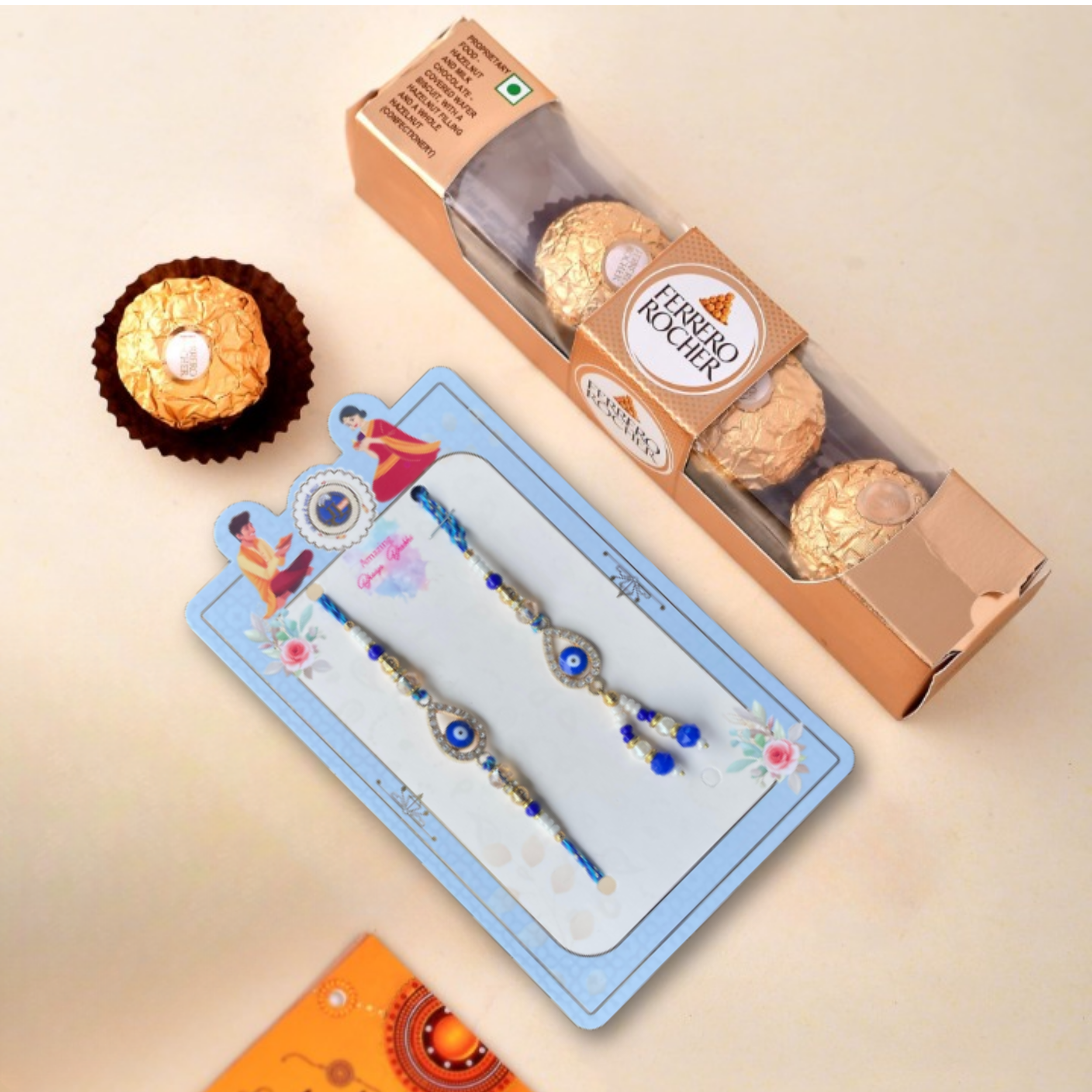 Nazar Raksha - Designer Evil Eye Rakhi with Ferrero Rocher Chocolate Gift Pack (4 pieces) , 50 g