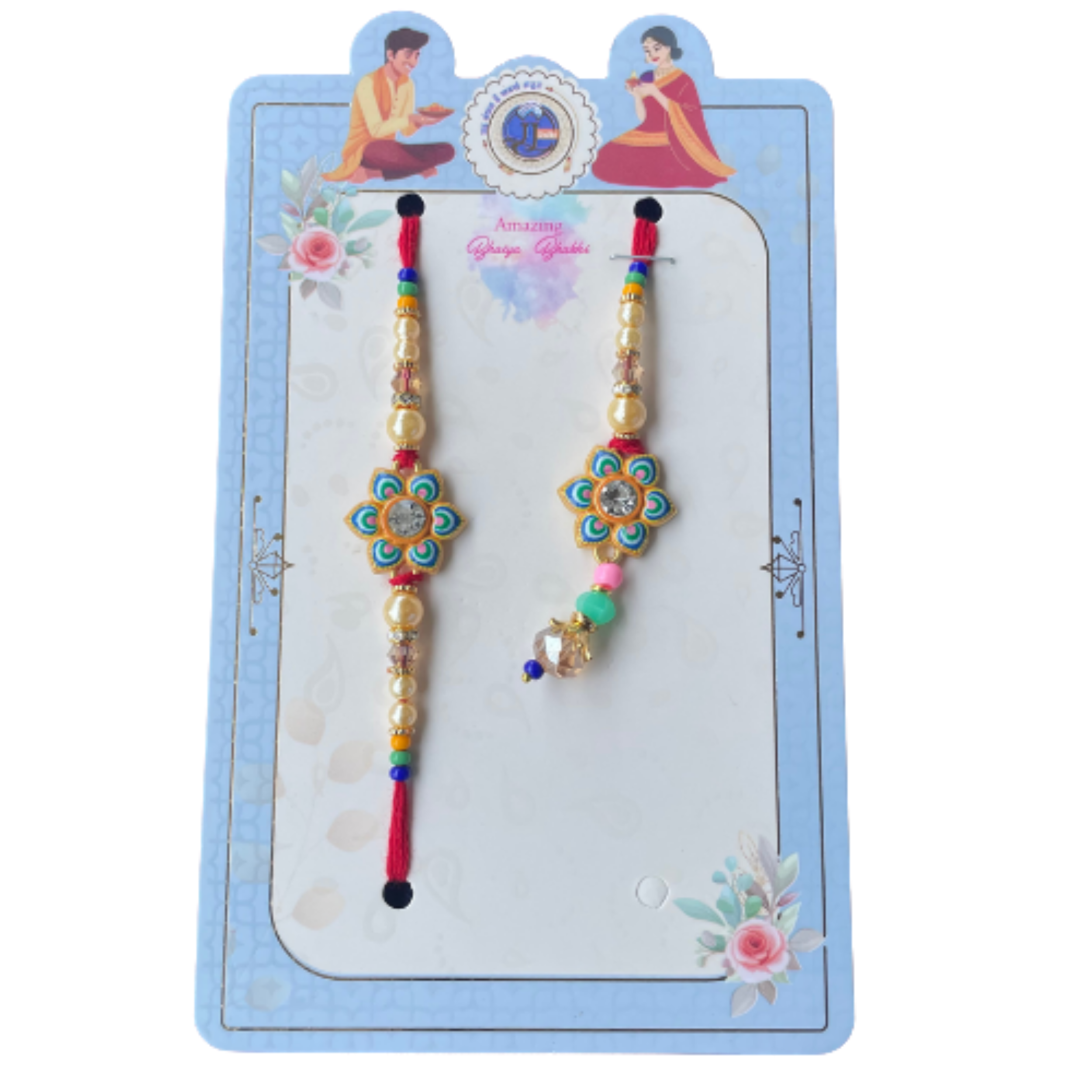 Unless mentioned specifically, our silver-look or gold-finish Rakhis are made with high-quality imitation materials—not real silver or gold.