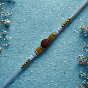 Traditional Rudraksha Rakhi with Light Orange Thread
